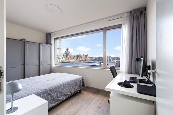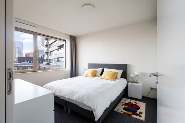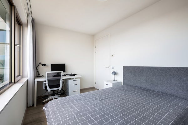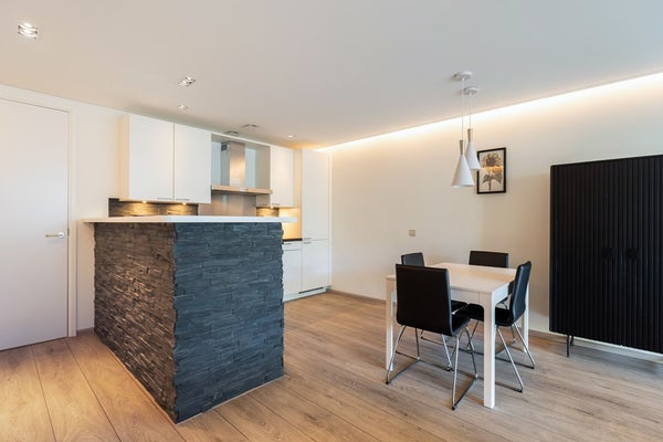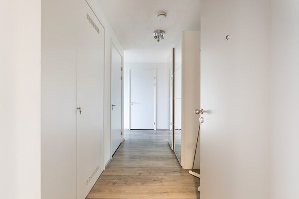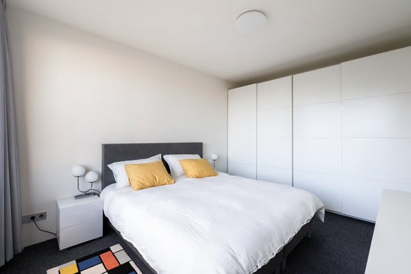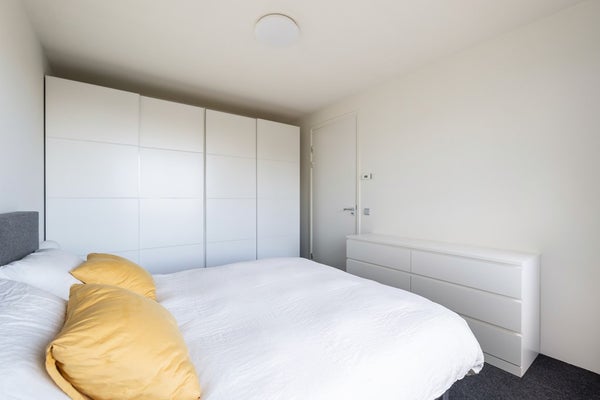 De woning telt drie kamers, waaronder twee volwaardige en ruim bemeten slaapkamers. De moderne badkamer is uitgerust met een royale inloopdouche en hoogwaardig sanitair. Het separate toilet is in dezelfde stijl uitgevoerd.