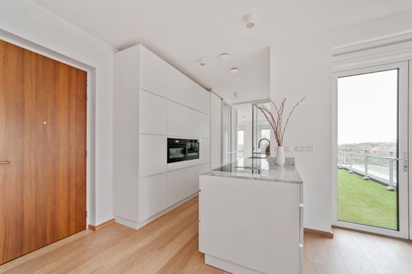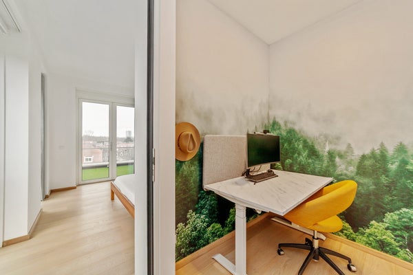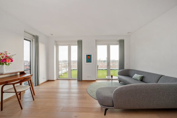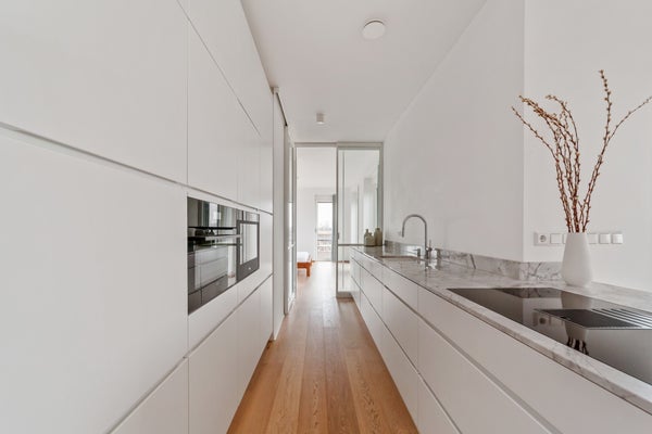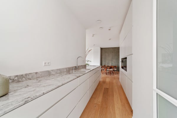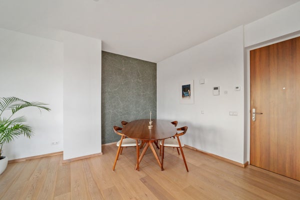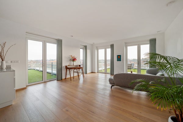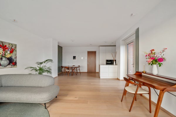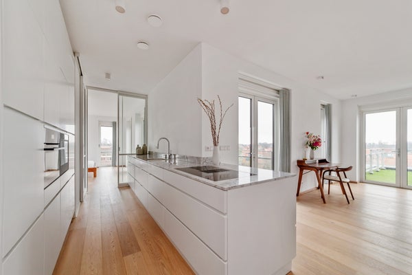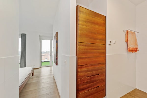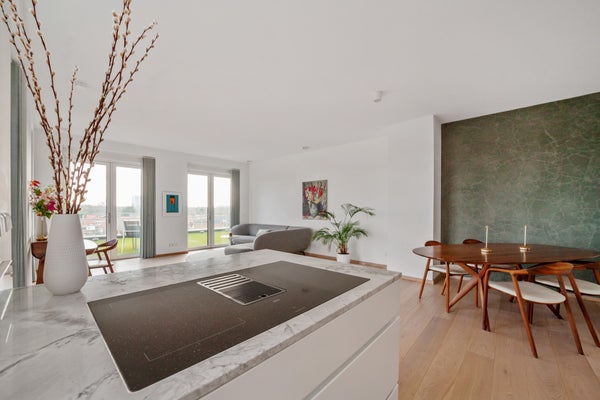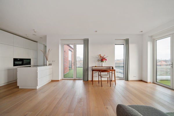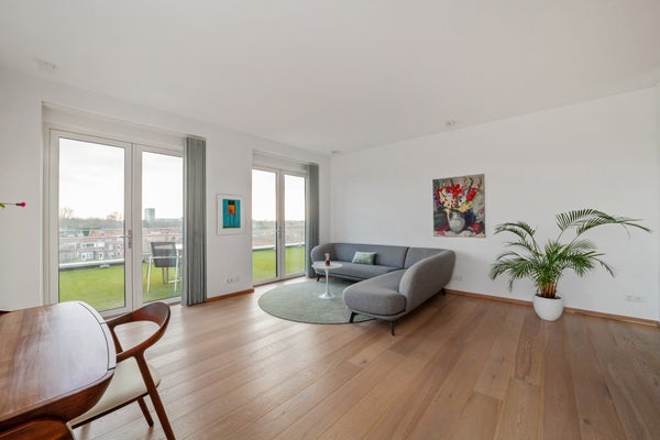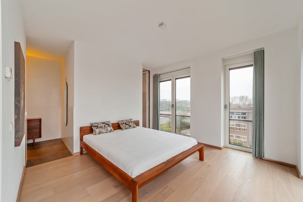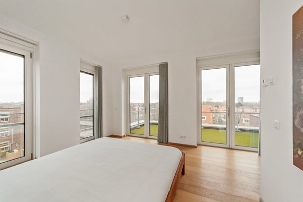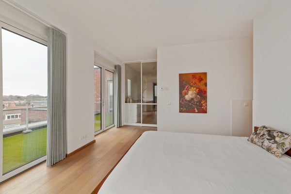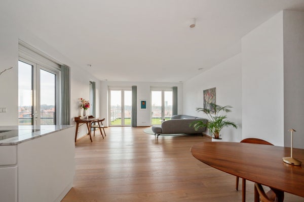 Bij binnenkomst valt op dat grote raampartijen optimale lichtinval bieden. Het penthouse heeft een luxe keuken met hoogwaardige inbouwapparatuur, waaronder een inductiekookplaat en combi-oven. De slaapkamer is licht en biedt toegang tot de badkamer, terwijl een multifunctionele ruimte nu als werkkamer wordt gebruikt. Dit appartement combineert comfort met een prachtige locatie, ideaal voor elk levensstadium.