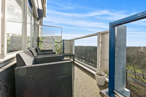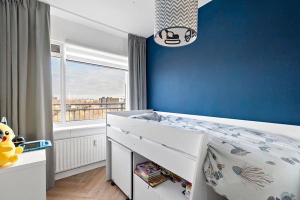Op de 11e verdieping van een goed onderhouden appartementencomplex bevindt zich dit mooi gesitueerde 3/4-kamer appartement. Vanuit de woonkamer en het ruime, zonnige balkon geniet je van een schitterend panorama over de groene omgeving. Het appartement heeft een praktische indeling met twee slaapkamers, een moderne badkamer en een open keuken, volledig ingericht met moderne apparaten. Er is een eigen parkeerplaats op het terrein en een berging op de eerste verdieping. De ligging is gunstig, met winkels en openbaar vervoer in de buurt, en op loopafstand van het strand van Kijkduin. Dit comfortabele appartement van circa 86 m² biedt een unieke levensstijl met een koper's bijdrage van € 258,-- per maand voor de VVE.
