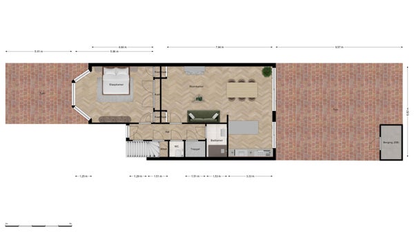 - Aanwezig (65 m², gelegen op het zuidwesten)