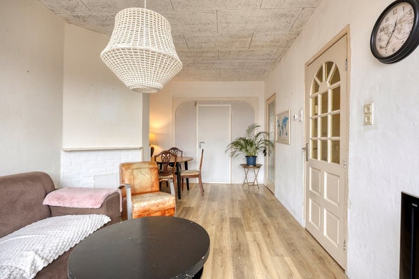 Via het portiek bereik je de woning en kom je binnen in de hal, die toegang geeft tot de verschillende vertrekken. De woonkamer is een prettige en lichte ruimte waar je eenvoudig een gezellige zit- en eethoek kunt creëren. Dankzij de praktische indeling voelt het appartement ruim en comfortabel aan.