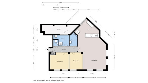- De portiekwoning heeft een woonoppervlakte van 72 m² en beschikt over 3 kamers, waarvan 2 slaapkamers;