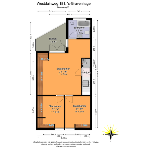 - De bovenwoning heeft een woonoppervlakte van 110 m² en beschikt over 5 kamers, waarvan 4 slaapkamers;