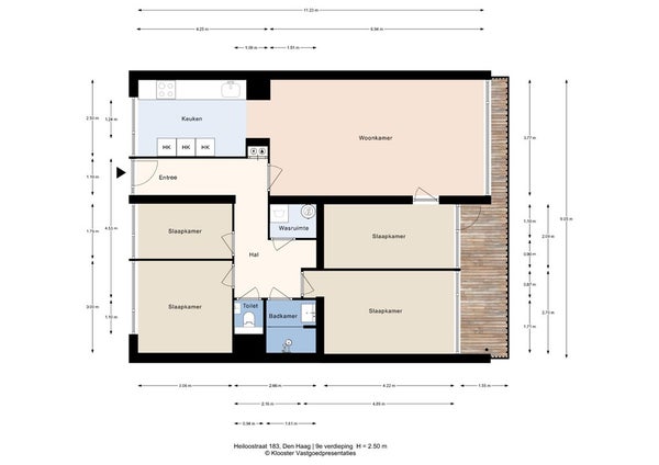 - De galerijflat heeft een woonoppervlakte van 93 m² en beschikt over 4 kamers, waarvan 4 slaapkamers;