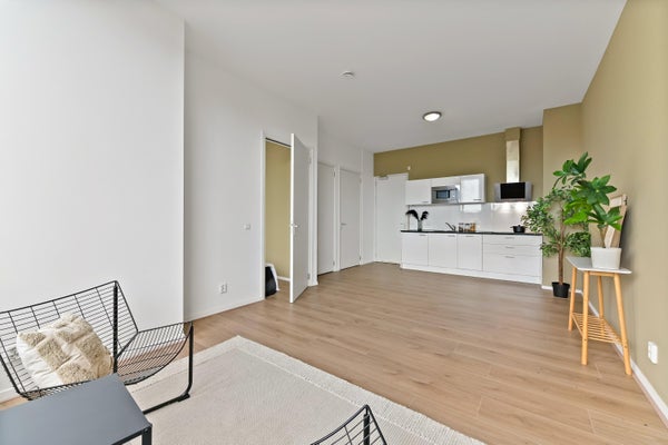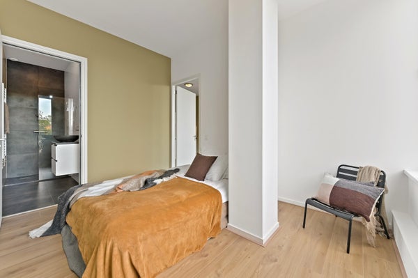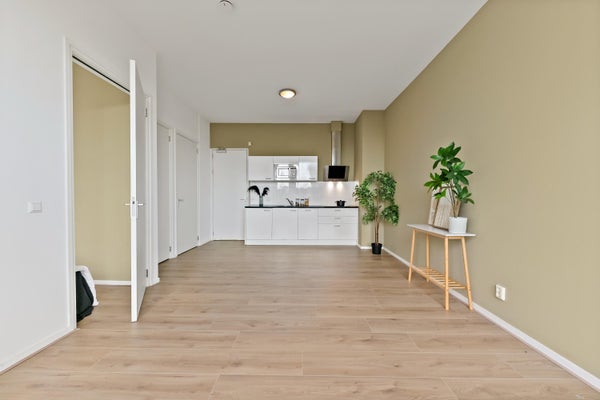 - De galerijflat heeft een woonoppervlakte van 45 m² en beschikt over 2 kamers, waarvan 1 slaapkamer;