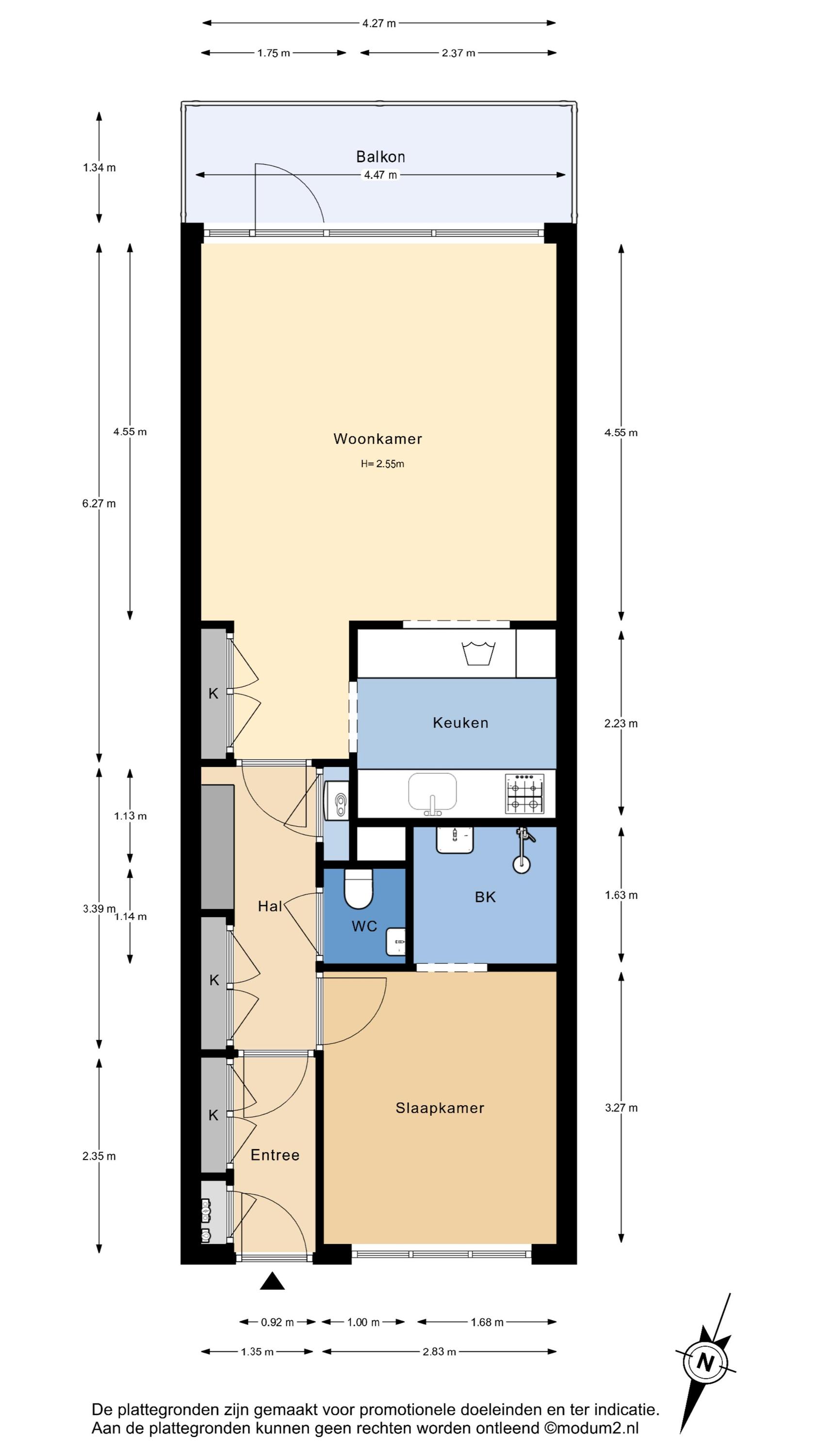 - De galerijflat heeft een woonoppervlakte van 51 m² en beschikt over 2 kamers, waarvan 1 slaapkamer;