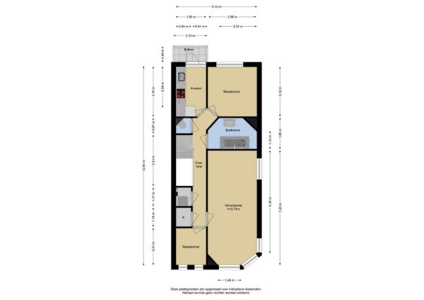Indeling: entree via open portiek, hal met trap, woonkamer met erker, keuken met toegang tot het balkon, slaapkamers en badkamer.