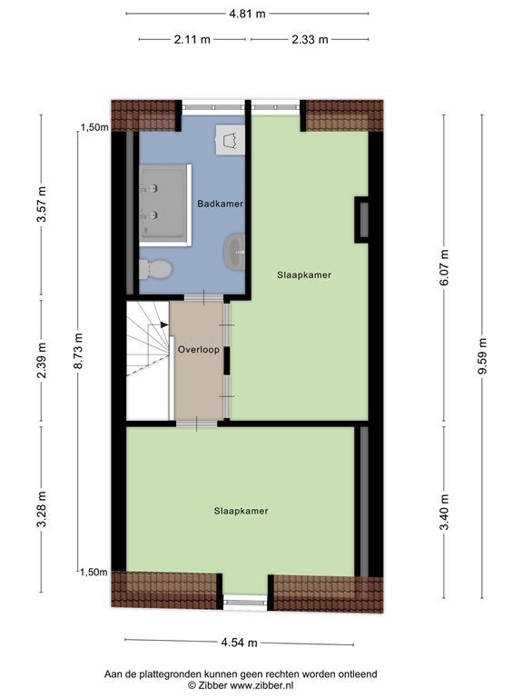 Op de tweede verdieping bevinden zich twee slaapkamers. Daarnaast beschikt de woning over twee separate toiletten, verdeeld over de eerste en tweede verdieping. Dankzij de royale oppervlakte zijn er interessante uitbreidingsmogelijkheden: zo kan op de eerste verdieping relatief eenvoudig een derde slaapkamer worden gerealiseerd door het plaatsen van een wand. Dit maakt de woning aantrekkelijk voor gezinnen, thuiswerkers of verhuurdoeleinden.