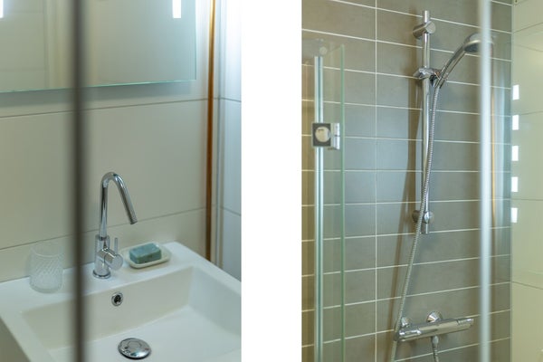 Het appartement beschikt over twee slaapkamers. Eén slaapkamer geeft toegang tot het zonnige, ruime balkon, een ideale plek om ’s ochtends van de zon te genieten of ’s avonds te ontspannen met een boek. De moderne badkamer is voorzien van een inloopdouche, vaste wastafel en aansluitingen voor wasmachine en droger. Het aparte toilet met fonteintje maakt het geheel compleet.