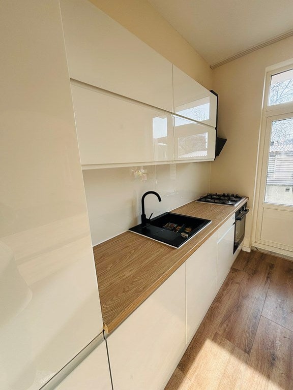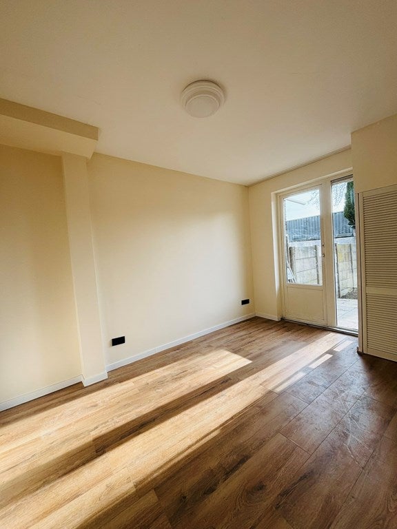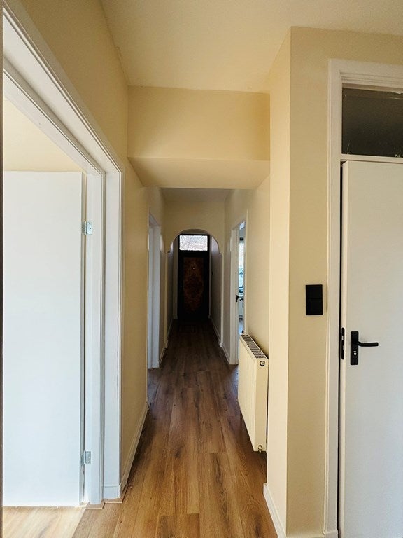 Entree/hal met plaats voor jassen en schoenen. Lichte, doorzon woonkamer met grote raampartijen en deur naar de tuin. Halfopen keuken met nieuwe inbouwapparatuur (o.a. kookplaat, afzuigkap, oven en koel-/vriescombinatie). Drie slaapkamers; flexibel in te delen voor thuiswerken/logeren, Badkamer met inloopdouche en wastafelmeubel, Diepe achtertuin met vrijstaand tuinhuis/berging (35 m²), perfect als werk-/hobbyruimte of extra opslag.
