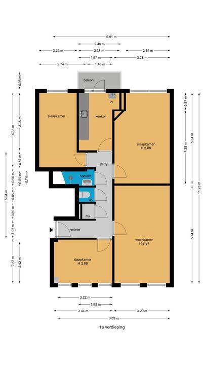- De galerijflat heeft een woonoppervlakte van 77 m² en beschikt over 4 kamers, waarvan 3 slaapkamers;
