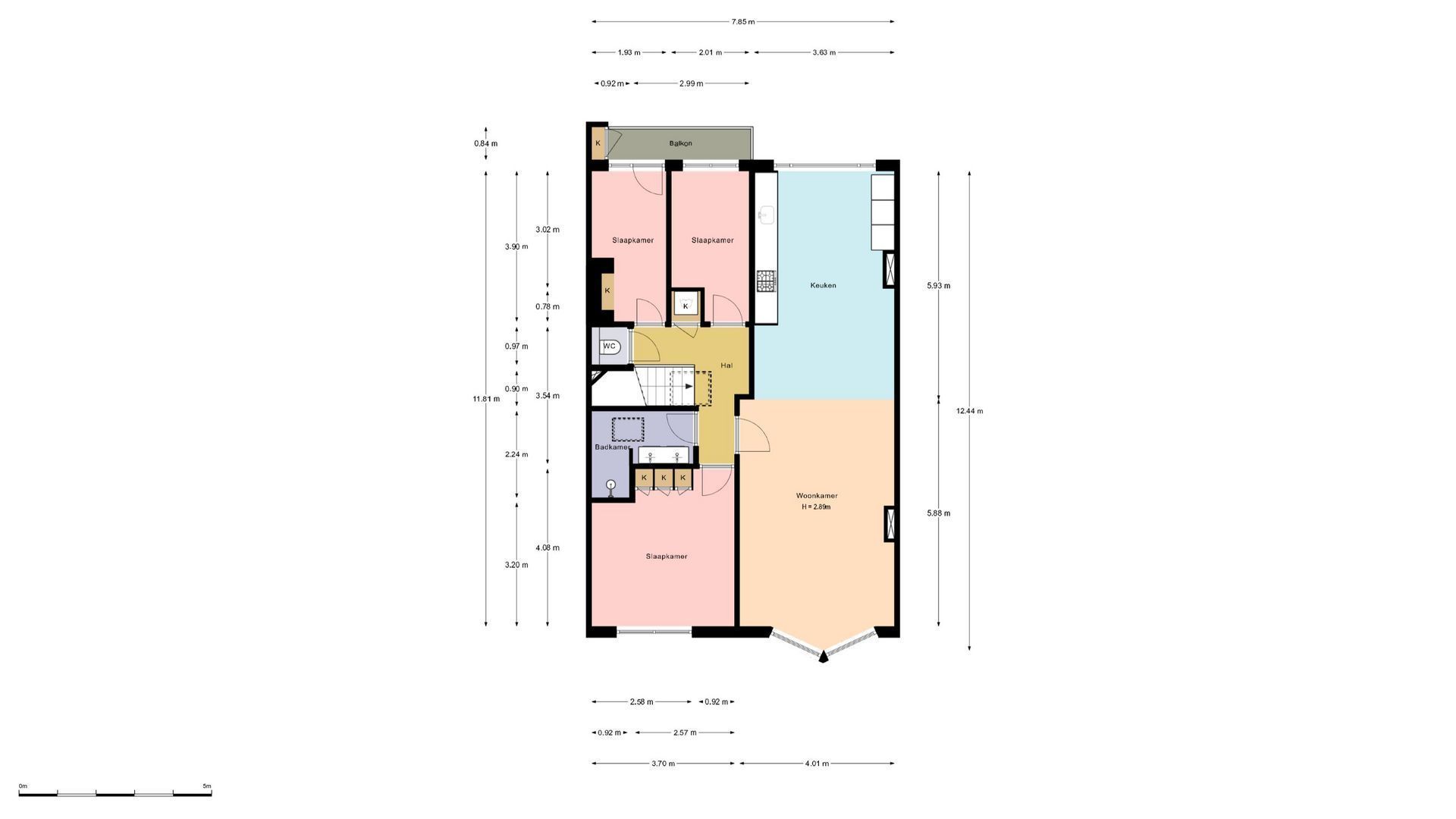 - De galerijflat heeft een woonoppervlakte van 98 m² en beschikt over 4 kamers, waarvan 3 slaapkamers;