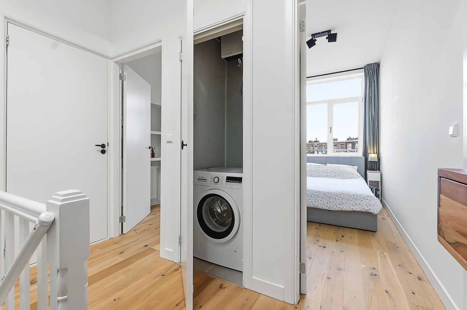 Dit instapklare appartement in Bezuidenhout heeft drie slaapkamers, een lichte woon-/eetkamer met open keuken en een moderne badkamer. Gelegen op de eerste verdieping bereik je via de trap de ruime hal die toegang biedt tot alle ruimtes. De woon-/eetkamer, nog gebouwd in 2022, is een lichte ruimte met een stijlvolle lamelparketvloer en een open keuken die van alle gemakken is voorzien. De hoofdslaapkamer heeft een vaste kastenwand en de overige slaapkamers liggen aan de achterzijde, met toegang tot een balkon. De badkamer is vernieuwd en uitgerust met een inloopdouche. Het appartement is goed geïsoleerd, met dubbel glas en heeft een energielabel B. Voorzieningen zoals een tramhalte, supermarkt en diverse recreatiemogelijkheden bevinden zich op loopafstand.