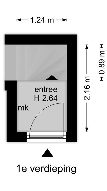Above the stairwell is an additional storage space of approximately 2.4 m2, which is accessible from both the hall and the small bedroom.