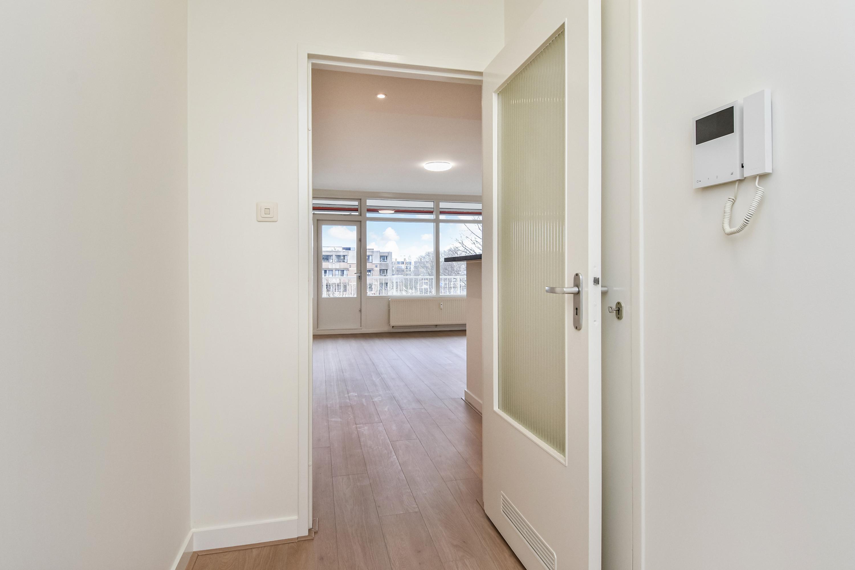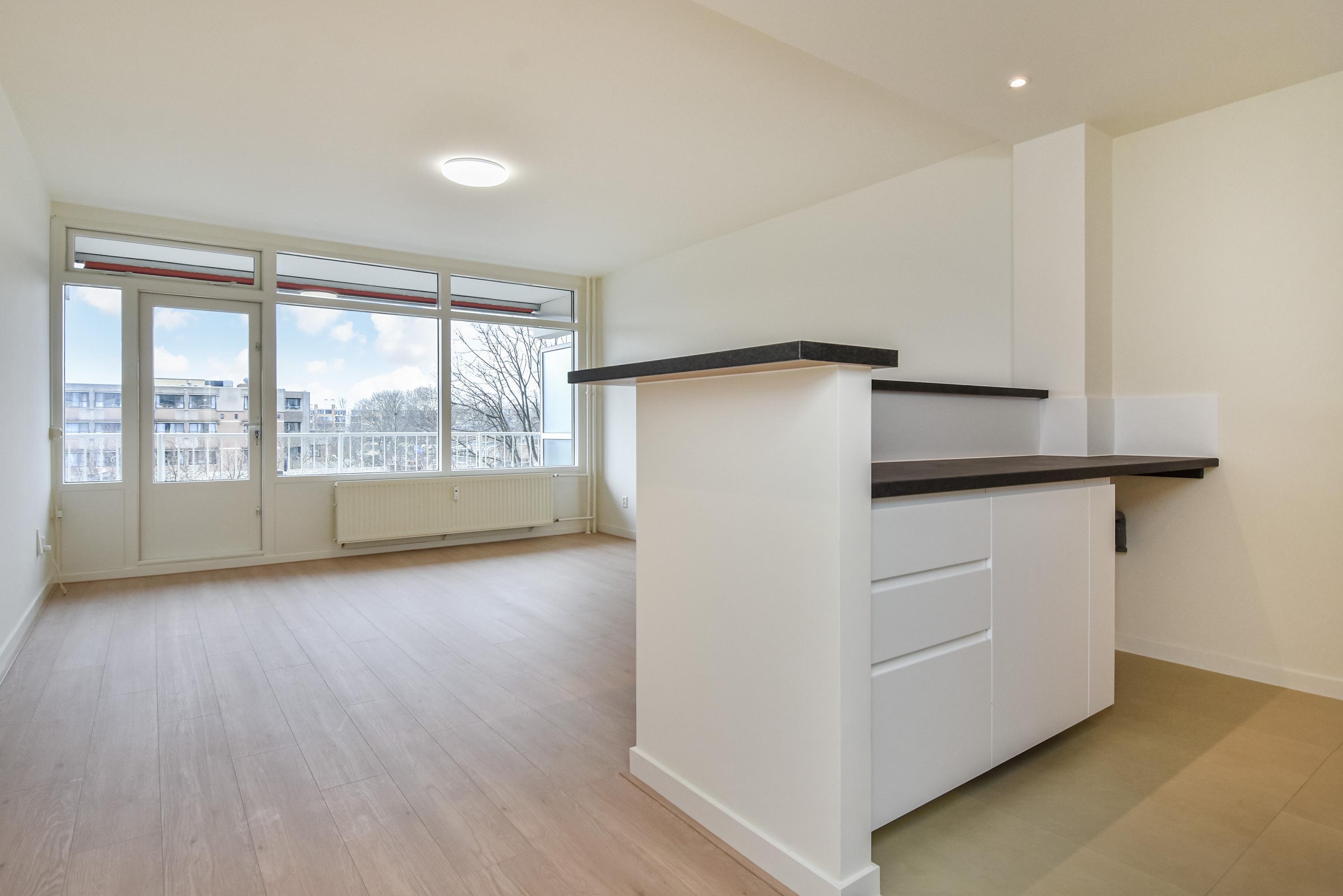 Dit volledig gerenoveerde appartement aan de Mozartlaan is instapklaar en biedt 51 m² aan woonruimte. Het beschikt over een nieuwe keuken, moderne badkamer met douche en wastafel, en een separaat toilet. De lichte woon/eetkamer meet ongeveer 4.45 x 7.55m en heeft toegang tot een ruim balkon van 4.45 x 1.38m met vrij uitzicht. De slaapkamer is aan de voorkant van het appartement gelegen. Het complex, dat een verzorgde gemeenschappelijke entree heeft, biedt toegang tot liften en een trappenhuis. Gelegen in de wijk Waldeck, dichtbij winkels, openbaar vervoer en op fietsafstand van strand en duinen, biedt het appartement een ideale combinatie van rust, ruimte en bereikbaarheid. Parkeren is mogelijk op eigen terrein.