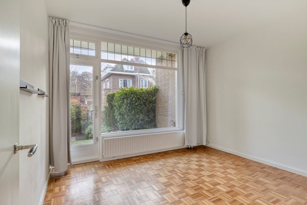Deze sfeervolle hoekparterre van circa 86m² ligt aan een rustige straat in Benoordenhout. De woning is recent gemoderniseerd en heeft een tuin aan drie zijden, dicht bij het park Clingendael en het Haagse Bos. De ligging zorgt voor veel lichtinval en een goede zonpositie in de tuin. De indeling omvat een gemeenschappelijke entree, een ruime hal met een apart toilet, en een voorzijde-kamer die perfect is als logeer- of studeerkamer. De woonkamer is licht en biedt toegang tot een mooi terras en de achtertuin. De moderne keuken is uitgerust met inbouwapparatuur. De badkamer heeft een inloopdouche en wastafel. Er zijn twee slaapkamers en een tuin met meerdere terrassen en een schuur. De woning is goed bereikbaar met winkels en openbaar vervoer op loopafstand.