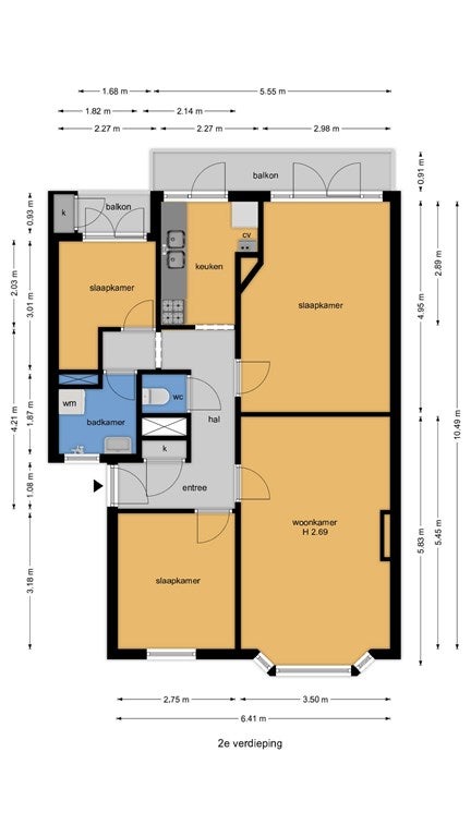 • De portiekflat heeft een woonoppervlakte van 73 m² en beschikt over 4 kamers, waarvan 3 slaapkamers;