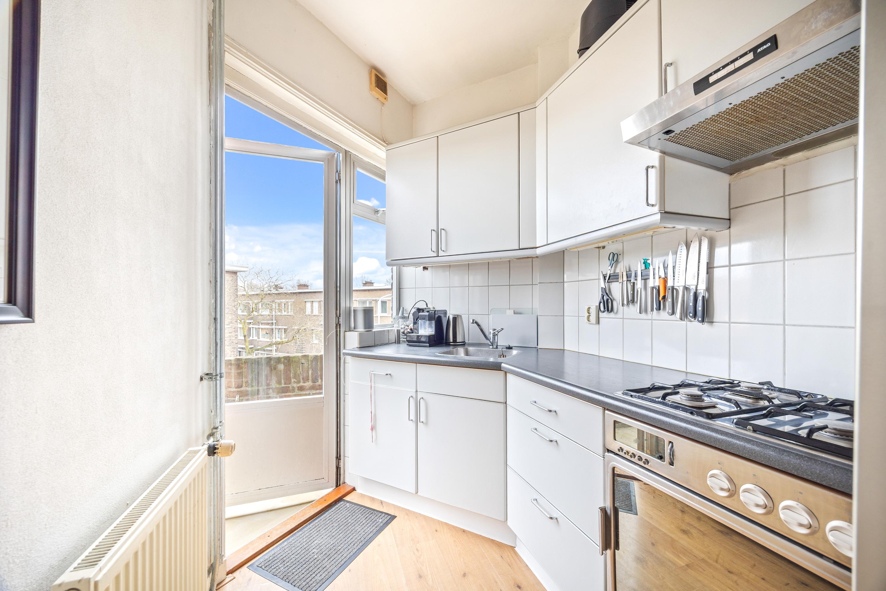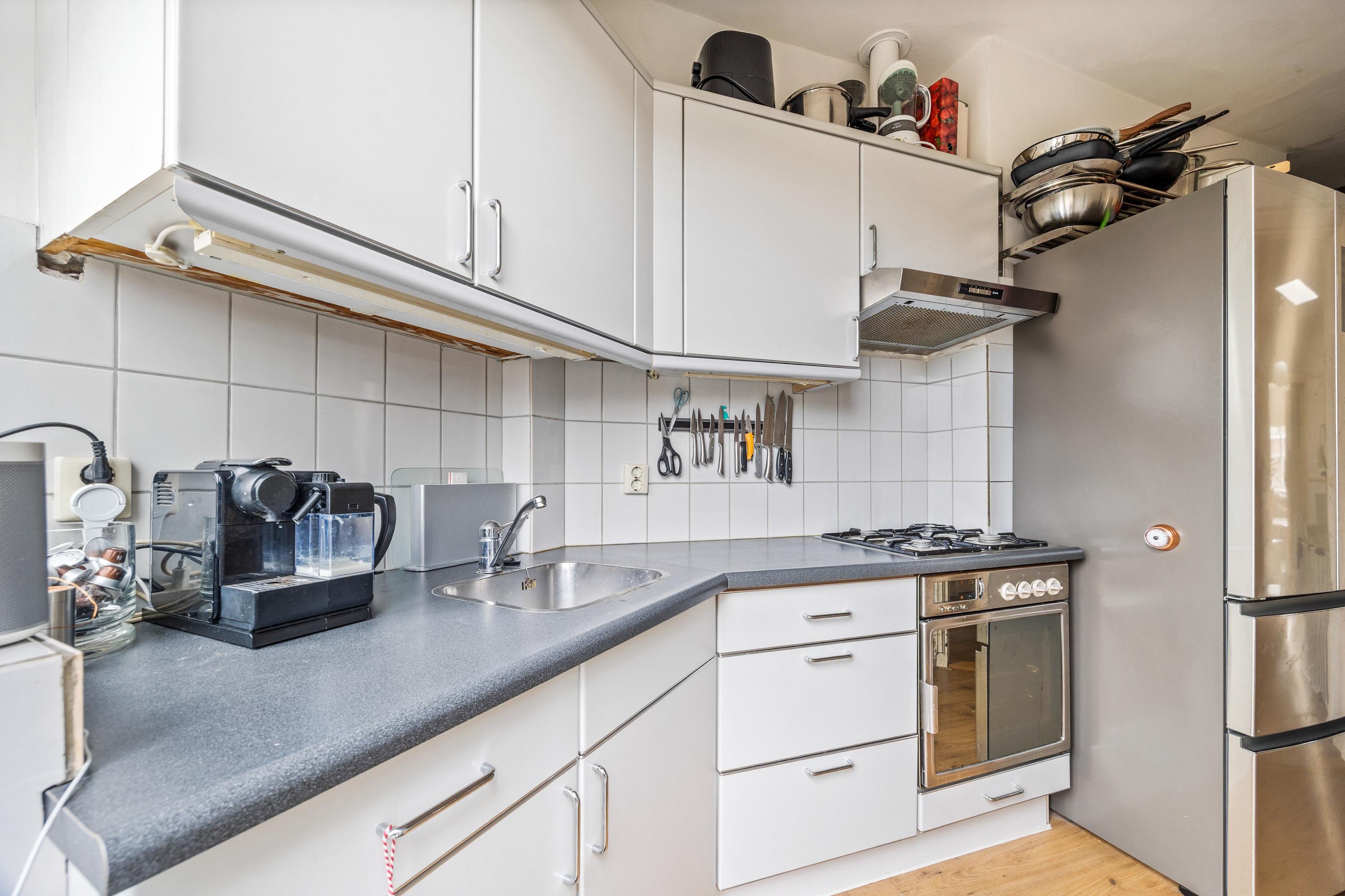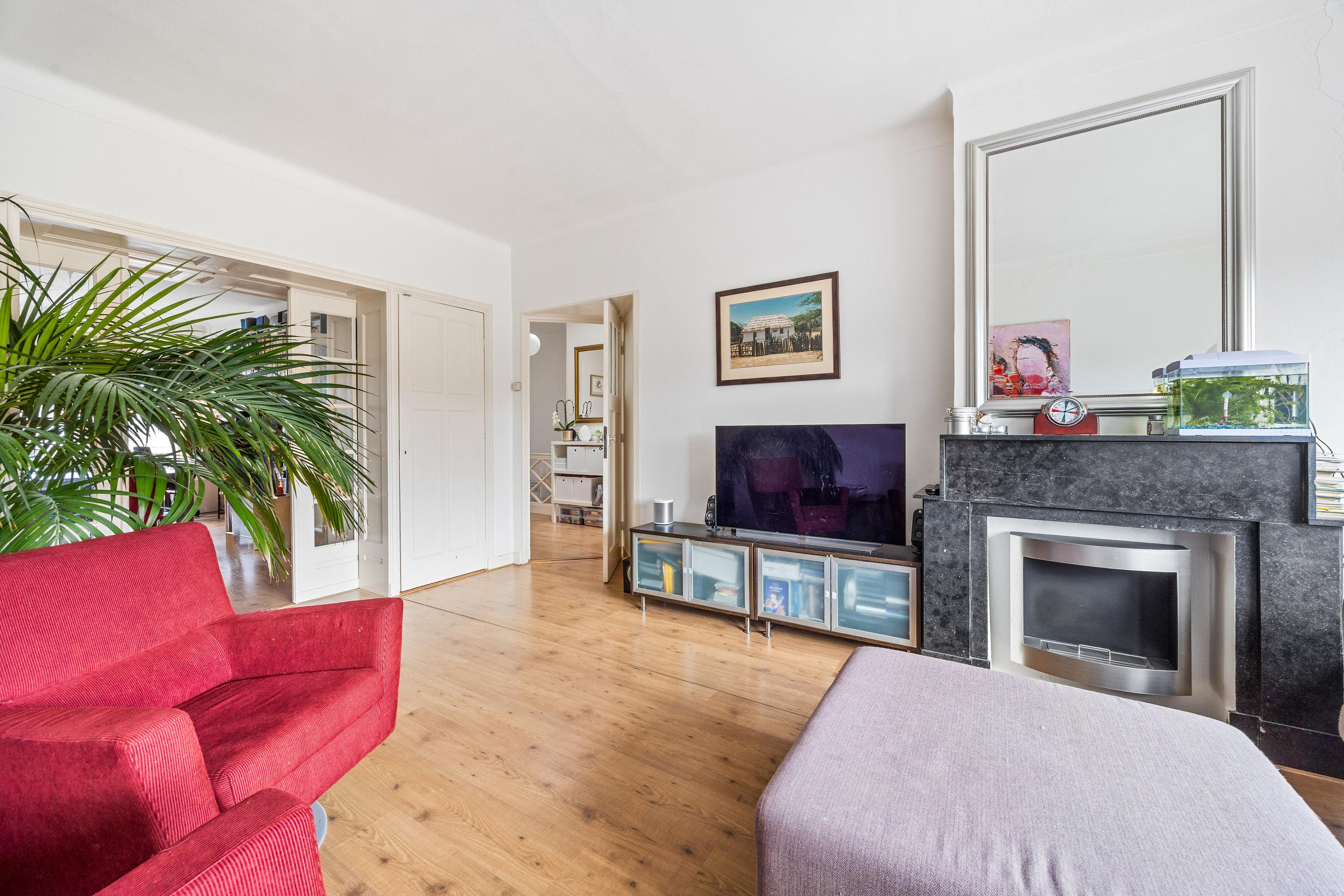 Met een woonoppervlakte van circa 103 m² beschikt het appartement over een lichte woonkamer, een keuken met toegang tot het balkon en twee slaapkamers, waaronder een ruime hoofdslaapkamer. De badkamer is uitgerust met een ligbad, douche, wastafel en aansluitingen voor wasmachine en droger. Dit goed onderhouden appartement biedt karakteristieke details en een prettige woonomgeving.