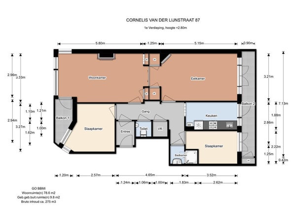 • De galerijflat heeft een woonoppervlakte van 79 m² en beschikt over 4 kamers, waarvan 2 slaapkamers;
