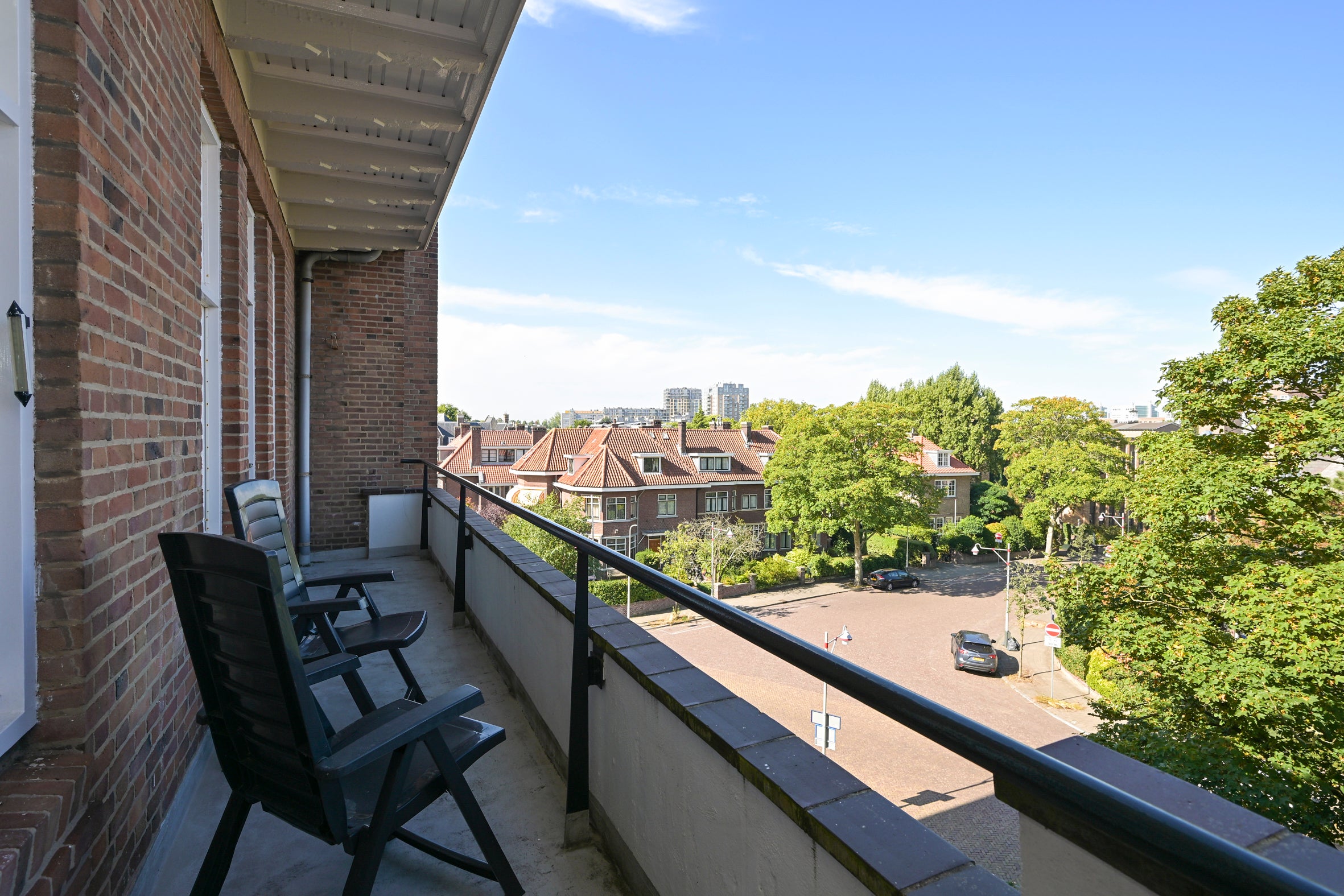 Dit schitterend gelegen hoekappartement van circa 148 m² bevindt zich in het monumentale Rijksmonument Zorgvliet en beschikt over drie zonnige balkons. Gelegen in de gewilde exclusieve woon- en ambassadewijk Zorgvliet, ligt het appartement op korte loopafstand van de Frederik Hendriklaan met een divers aanbod aan winkels en horecagelegenheden. Op de derde verdieping biedt het appartement een prachtig vrij uitzicht richting Statenkwartier. De indeling omvat een ruime L-vormige gang die leidt naar een lichte woonkamer met toegang tot een zonnig balkon, een eetkamer met suite kasten en een groot balkon. Er zijn twee slaapkamers, waaronder een hoofdslaapkamer met eigen balkon, en twee badkamers. De handgemaakte keuken is volledig uitgerust. Dit appartement biedt eveneens eigen zolderberging en parkeerfaciliteiten.