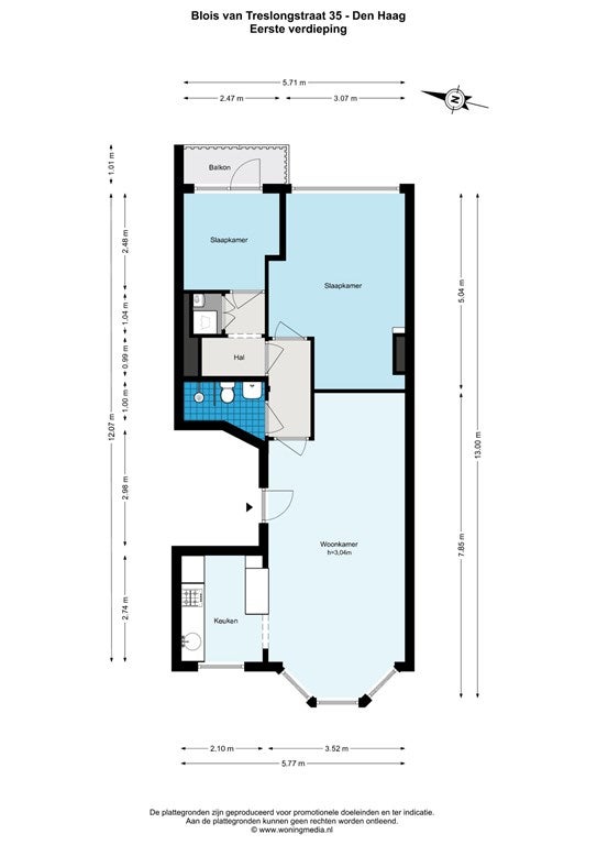 - De portiekflat heeft een woonoppervlakte van 63 m² en beschikt over 3 kamers, waarvan 2 slaapkamers;