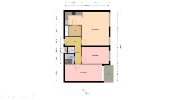 • De galerijflat heeft een woonoppervlakte van 77 m² en beschikt over 3 kamers, waarvan 2 slaapkamers;