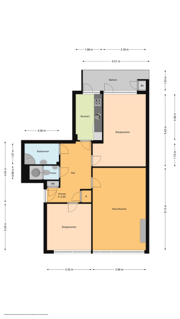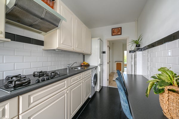 - De portiekflat heeft een woonoppervlakte van 82 m² en beschikt over 3 kamers, waarvan 2 slaapkamers;