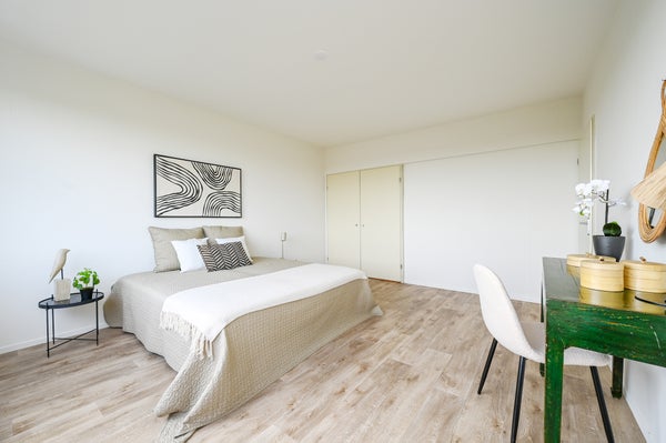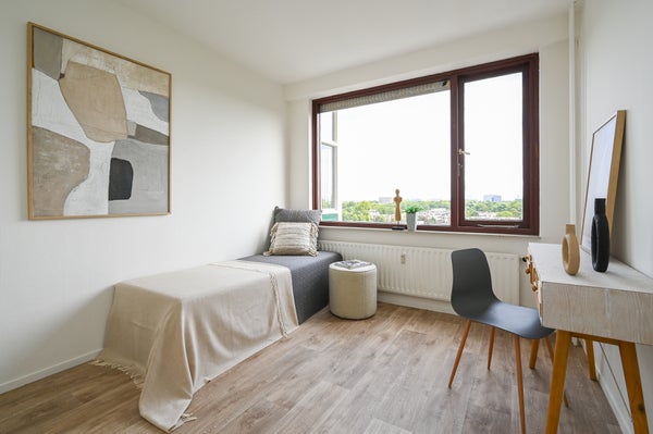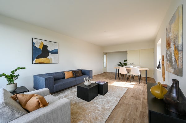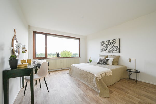 - De portiekflat heeft een woonoppervlakte van 91 m² en beschikt over 3 kamers, waarvan 2 slaapkamers;