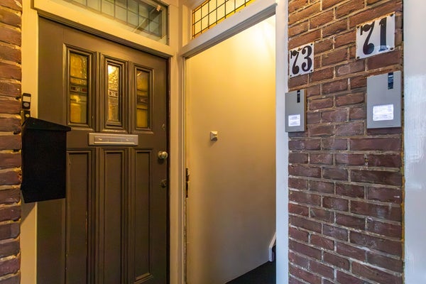 Traditional The Hague portico with shared entrance. Entrance to the apartment on the second floor.