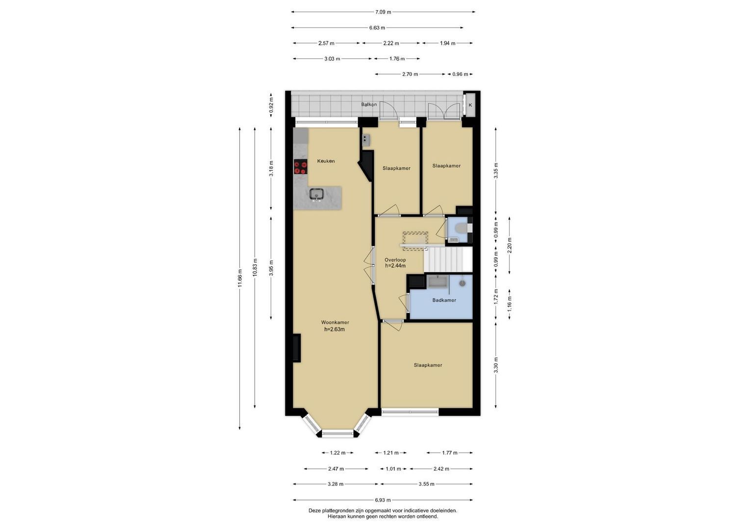 • De galerijflat heeft een woonoppervlakte van 80 m² en beschikt over 4 kamers, waarvan 3 slaapkamers;