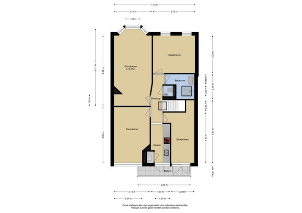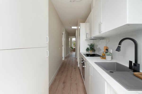 - De portiekwoning heeft een woonoppervlakte van 82 m² en beschikt over 4 kamers, waarvan 3 slaapkamers;