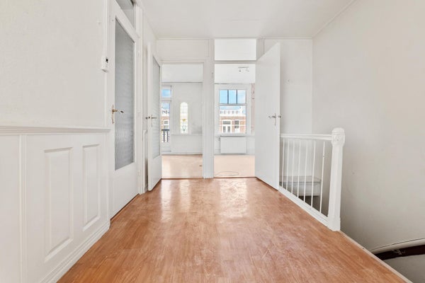 Dit ruime 7/8-kamer dubbel bovenhuis ligt op een geweldige locatie nabij het Westbroekpark. De woning, met een woonoppervlakte van ca. 137m² en een perceeloppervlakte van ca. 109m², heeft prachtige glas-in-loodramen en originele details. De indeling begint met een entree op de begane grond. Op de eerste verdieping vindt u de ensuite woon-/eetkamer, een kleinere kamer aan de voorzijde, een extra kamer aan de achterzijde en de keuken. De tweede verdieping heeft een royale overloop met vier volwaardige slaapkamers en een ruime badkamer met lichtkoepel. De grote slaapkamer vooraan heeft openslaande deuren naar een balkon. Dit huis dateert uit 1905 en is gelegen op eigen grond. Huidig energielabel is E. Er geldt een maandelijkse VvE-bijdrage van € 125,-.