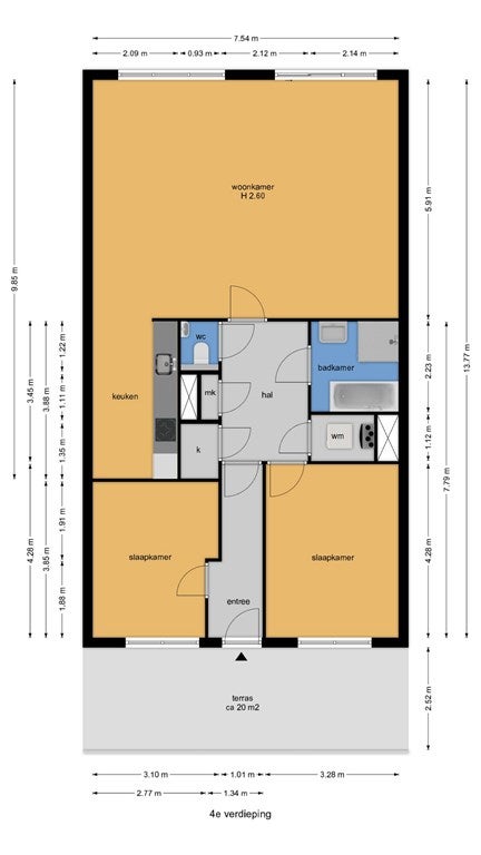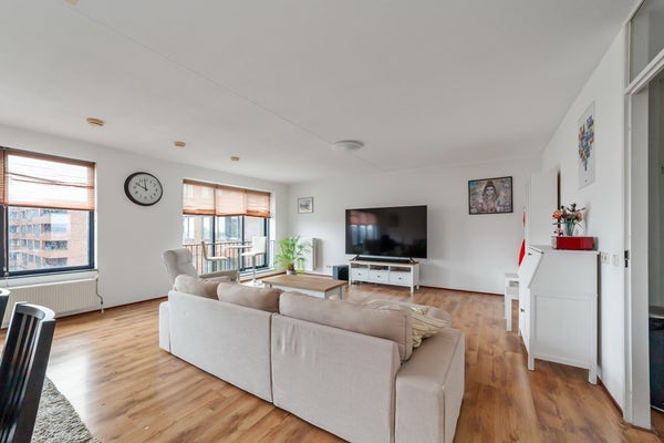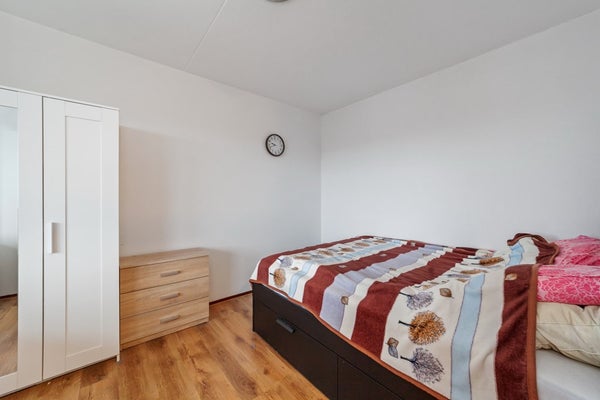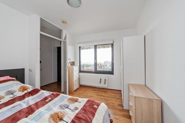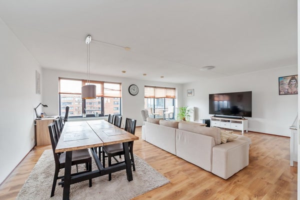 - De portiekflat heeft een woonoppervlakte van 102 m² en beschikt over 3 kamers, waarvan 2 slaapkamers;