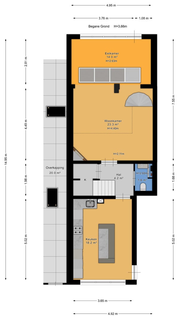 - Het dubbele benedenhuis heeft een woonoppervlakte van 141 m² en beschikt over 5 kamers, waarvan 3 slaapkamers;