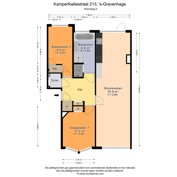 - De benedenwoning heeft een woonoppervlakte van 81 m² en beschikt over 3 kamers, waarvan 2 slaapkamers;