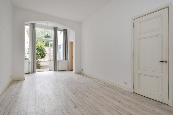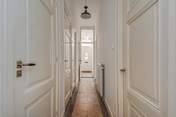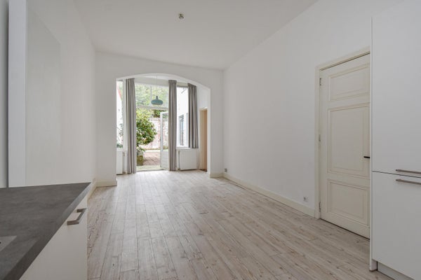 In het historische centrum van Den Haag, op een rustige straat dichtbij de Grote Markt en de Prinsegracht, ligt deze gerenoveerde parterre met drie slaapkamers en een royale achtertuin. De ligging is ideaal; je bent omringd door gezellige winkels, restaurants en cafés. Voor dagelijkse boodschappen kun je naar de Albert Heijn en de bakker op de hoek. De indeling omvat een vestibule, een lange hal met een originele granieten vloer, een toilet met fontein, en aan de voorzijde de eerste slaapkamer. Aan de achterkant bevindt zich de woon-/eetkamer met open keuken en toegang tot de zonnige achtertuin. De badkamer heeft een douchecabine, dubbele wastafel en ruimte voor wasmachine. De tweede slaapkamer heeft een inbouwkast en toegang tot de tuin. De trap leidt naar de derde slaapkamer. Het woonoppervlak is 96 m² en de inhoud 429 m³.