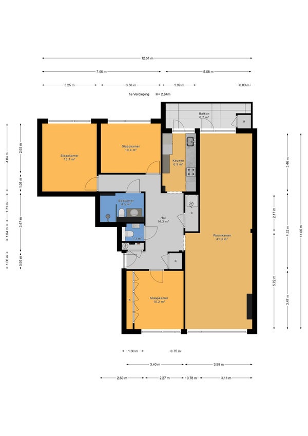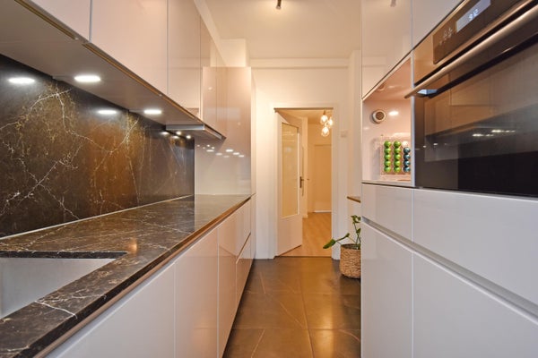 - De portiekflat heeft een woonoppervlakte van 112 m² en beschikt over 5 kamers, waarvan 3 slaapkamers;