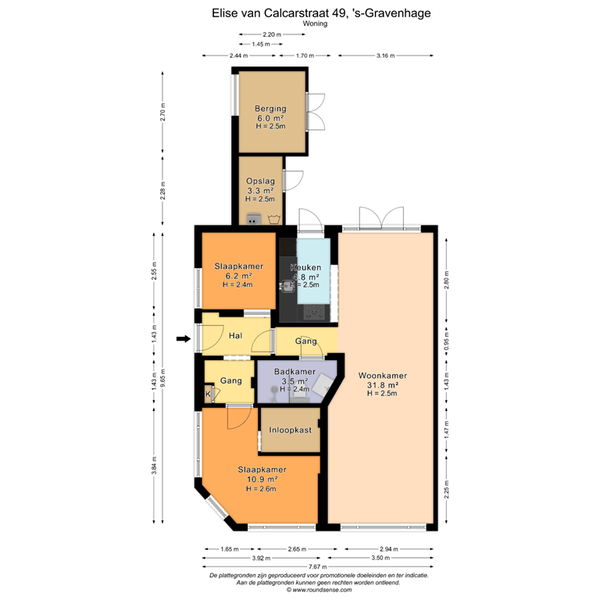 - Aanwezig (34 m², gelegen op het zuidwesten)