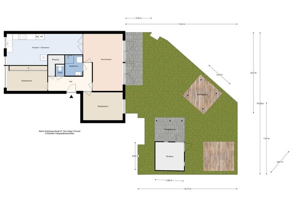 - Aanwezig (84 m², gelegen op het zuidwesten)