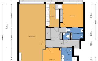 - De galerijflat heeft een woonoppervlakte van 117 m² en beschikt over 4 kamers, waarvan 2 slaapkamers;
