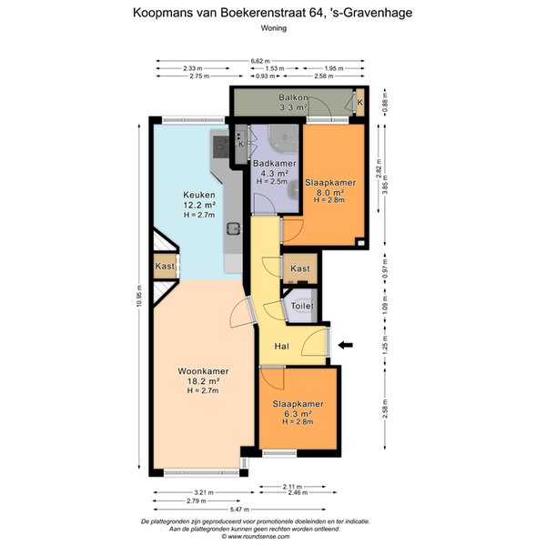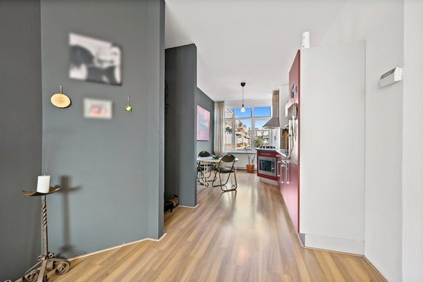 - De portiekflat heeft een woonoppervlakte van 63 m² en beschikt over 3 kamers, waarvan 2 slaapkamers;