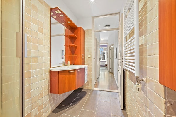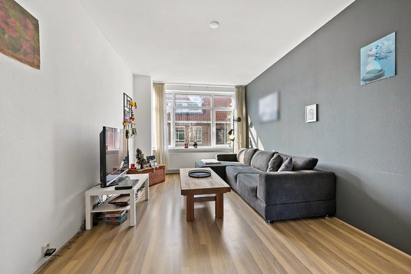 Gelegen in een rustige straat een goed onderhouden 3-kamer bovenwoning van 63m² gesitueerd op de eerste verdieping. Dit appartement beschikt over een prettige en speelse indeling met veel lichtinval, een luxe open keuken, een moderne badkamer, een woon/eetkamer, 2 slaapkamers, centrale verwarming, kozijnen met dubbele beglazing en gelegen op eigen grond. Daarnaast kenmerkt deze woning zich door een karakteristieke vooroorlogse geveluitstraling en maakt het onderdeel uit van een actieve vereniging van eigenaren.
