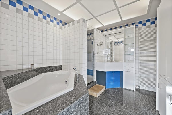 - Riante badkamer met minimalistisch design, ligbad, separate douche en slimme indeling