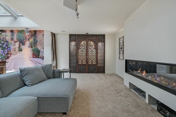 De gezellige, ruime eetkamer is voorzien van Velux skylights wat zorgt voor een overvloed aan natuurlijk licht. De skylights zijn op afstand, of met een app bedienbaar. De sfeervolle woonkamer is voorzien van een moderne haard, ingebouwde speakers en een projector waardoor er op groot scherm tv gekeken kan worden.
