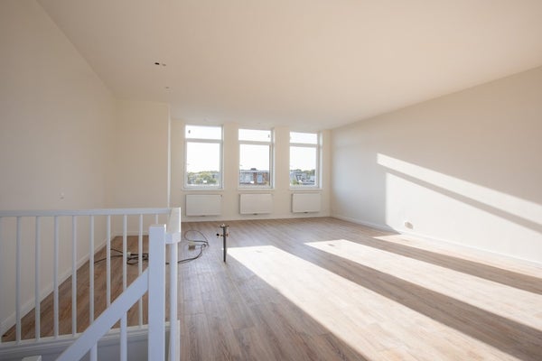 Derde etage: Deze in 2025 nieuw aangelegde woonlaag van 45 m2 beschikt over een riante woonkamer met aansluitpunten voor het zelf plaatsen van een luxe open keuken met een kookeiland. Vanuit de woonkamer is er toegang tot het ruime dakterras van 6 m2 op het oosten met fraai uitzicht. Alle ramen op deze etage zijn voorzien van HR++ glas met draaikiepramen.