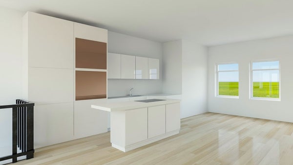 2.) Keuken aansluitpunten (elektra, aan -en afvoer water) voor kookeiland zijn aanwezig.