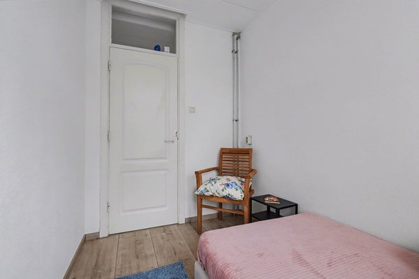Aan de voorzijde bevindt zich een ruime slaapkamer. De tweede slaapkamer ligt aan de achterzijde en kijkt uit over de zonnige tuin. De badkamer is voorzien van een douche en wastafel, daarnaast is er een separaat toilet met fonteintje.