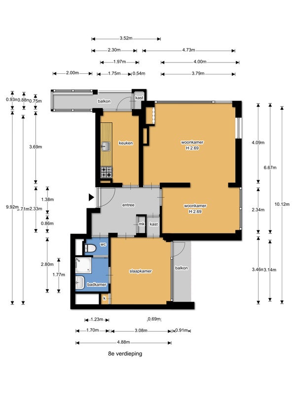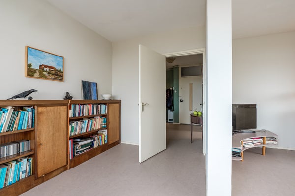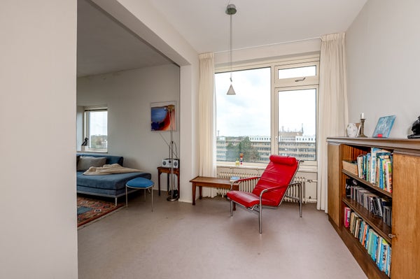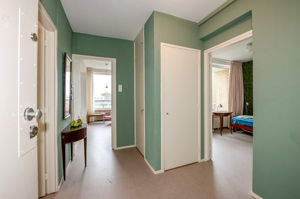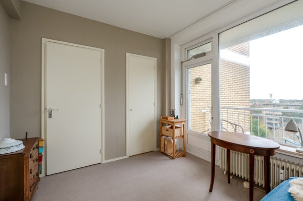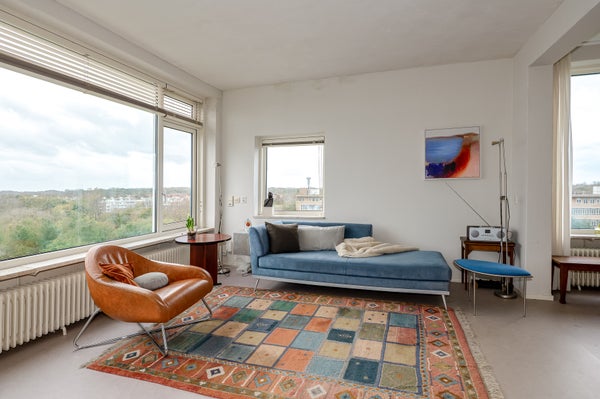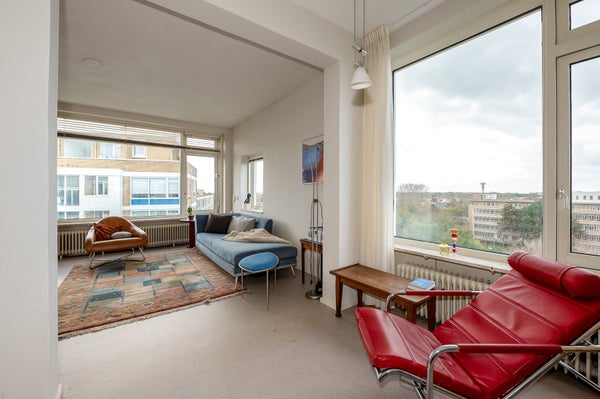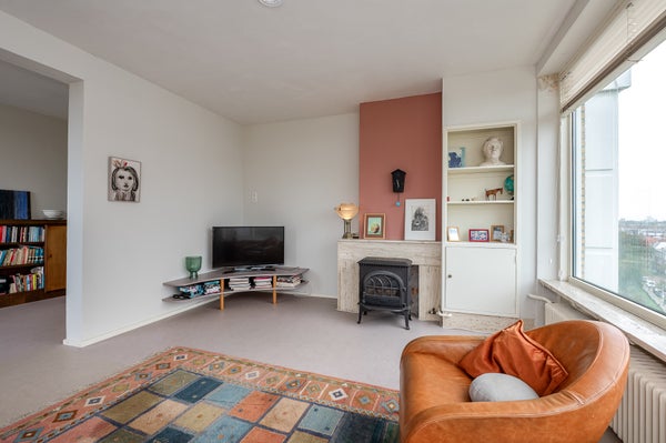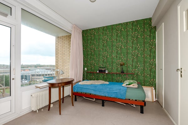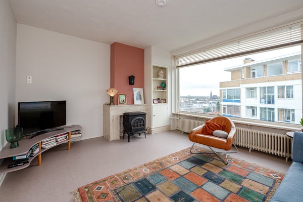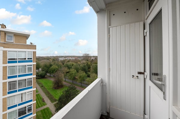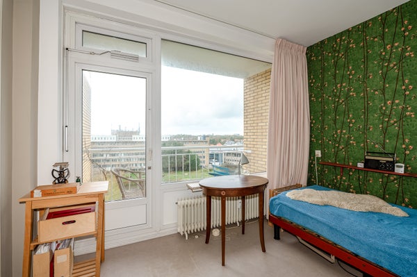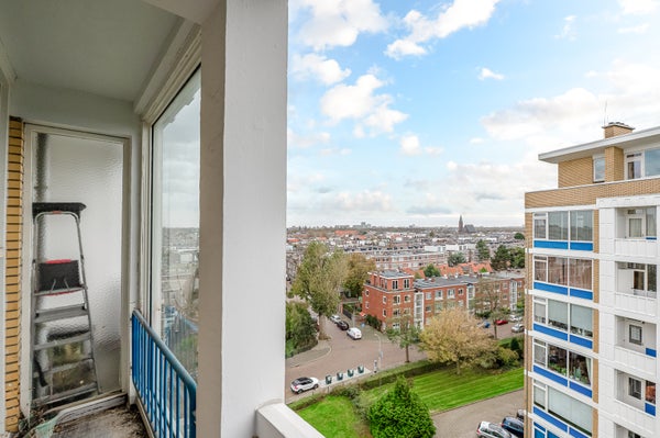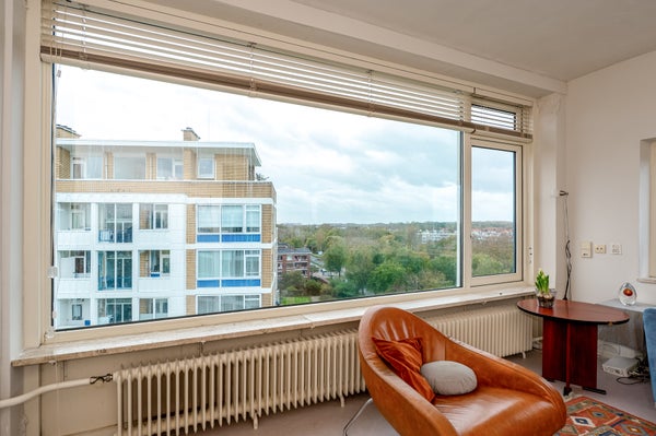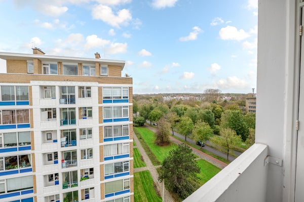 Dit sfeervolle en lichte 3-kamer appartement op de 8e etage in de Bomenbuurt biedt een geweldige leefomgeving. Via een gesloten entree en een lift bereik je de woning. De indeling omvat een hal met toegang tot een meterkast, toilet en de badkamer, die verbonden is met de slaapkamer. De keuken heeft toegang tot een balkon op het zonnige zuidwesten. De slaapkamer beschikt over een vaste kast en toegang tot een tweede balkon. De woonkamer, gelegen op de zuidwesthoek, biedt een prachtig uitzicht en veel lichtinval.