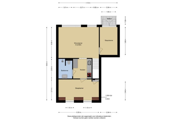 - De bovenwoning heeft een woonoppervlakte van 60 m² en beschikt over 3 kamers, waarvan 2 slaapkamers;