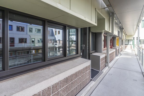 - De galerijflat heeft een woonoppervlakte van 66 m² en beschikt over 2 kamers, waarvan 1 slaapkamer;